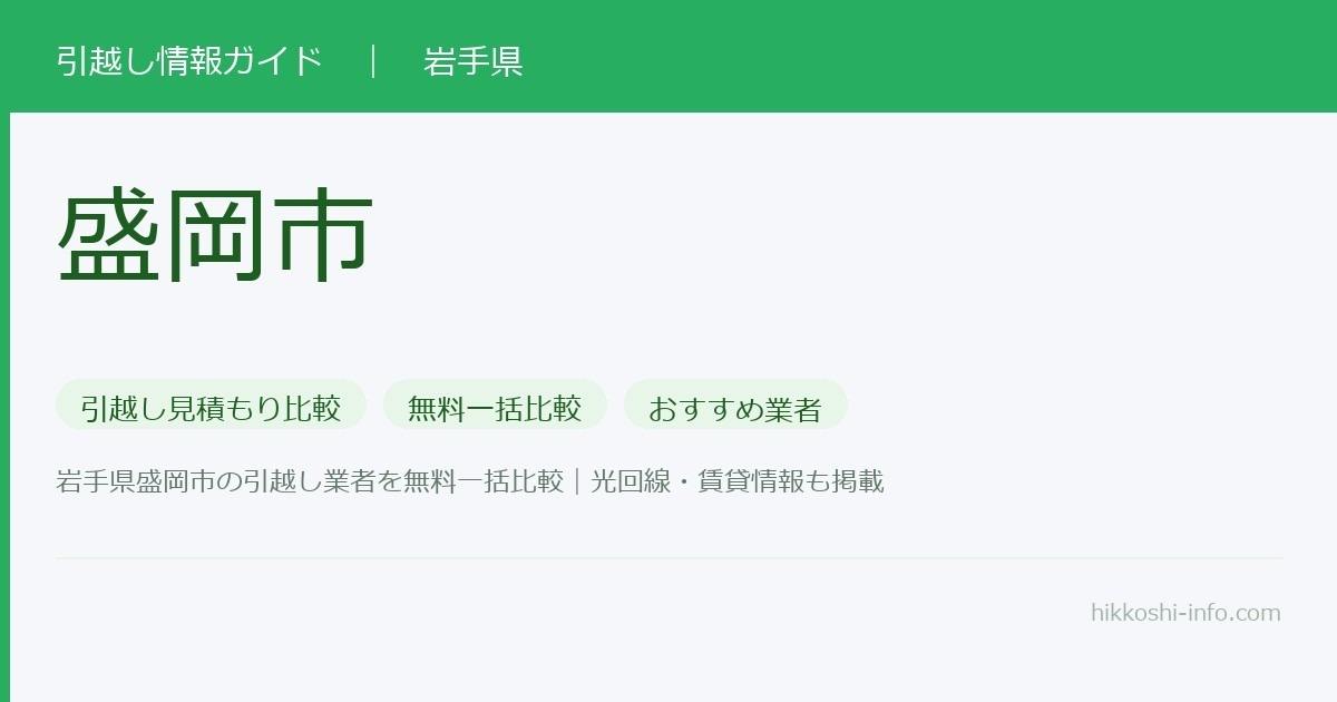 岩手県の県庁所在地である盛岡市への引越しをお考えの方に向けて、引越し業者選びのポイントと一括見積もりサービスの活用法をご紹介します。豊かな自然と歴史が息づく盛岡市での新生活を、スムーズな引越しでスタートさせましょう。
