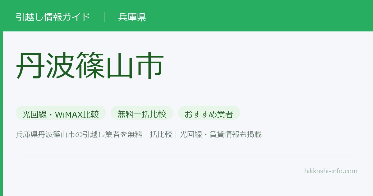 兵庫県丹波篠山市への引越し完全ガイド:光回線・インターネット申込のポイント