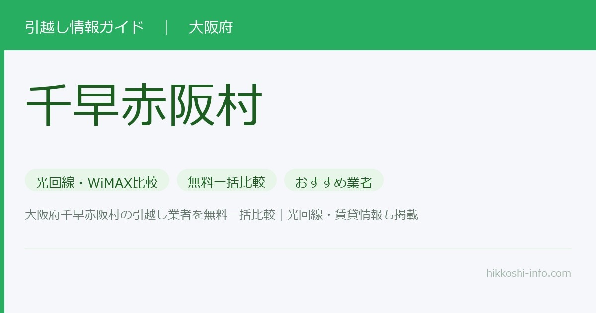 大阪府千早赤阪村への引越しが決まり、インターネット回線をどうしようか悩んでいる方も多いのではないでしょうか。千早赤阪村は大阪府唯一の村として知られ、豊かな自然環境が魅力の地域ですが、インターネット環境はどのような状況なのでしょうか。